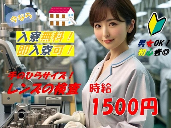 【日勤・土日休み】手のひらサイズの軽量品製造 カメラレンズのカンタン組立・検査作業で時給1400円