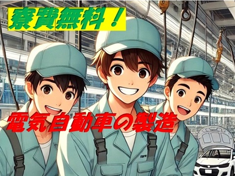 人気の電気自動車製造工場での車両組立・補助作業 リモート面談で一発内定/寮費無料・即入寮可