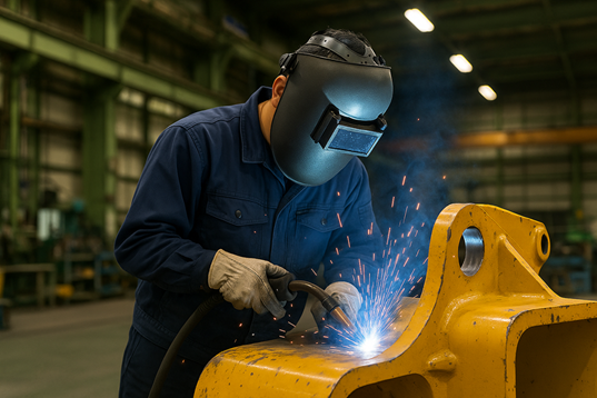 仕事内容 建設機械に使われる油圧部品の半自動溶接、アーク溶接のお仕事です。