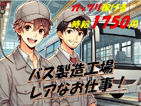 未経験者OKの稼げる月収30万以上可の組立作業 日勤・土日休<寮費無料・即入寮可>路線バス製造のレアなお仕事