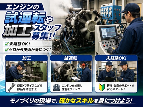 日勤 残業少な目 土日祝休み エンジンの製造補助・検査業務