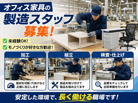 日勤/工場/未経験OK  オフィス家具の組立・検査