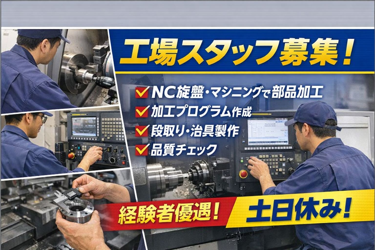 NC旋盤経験者歓迎 日勤のみ