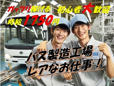 未経験者OKの稼げる月収30万以上可の組立作業 日勤・土日休<寮費無料・即入寮可>路線バス製造のレアなお仕事